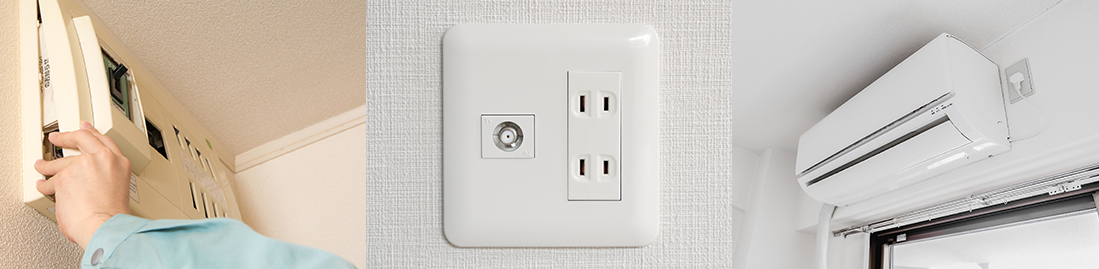 ブレーカー、コンセント、スイッチ工事や配線工事、エアコンの取付けなど